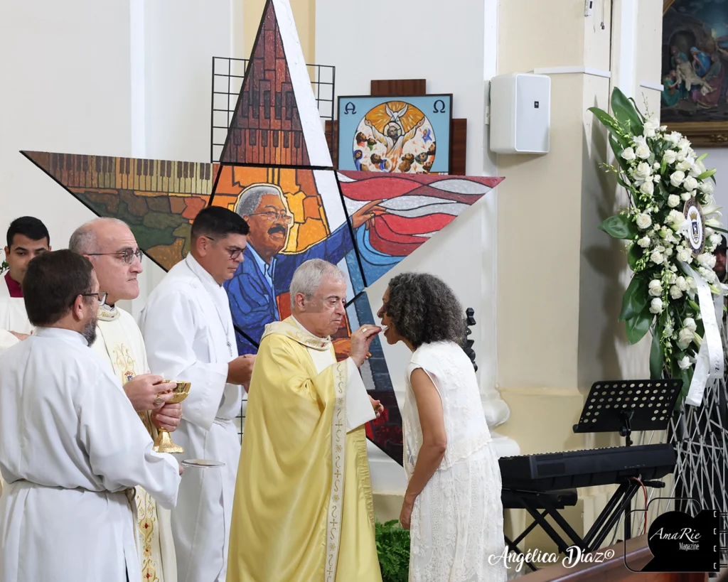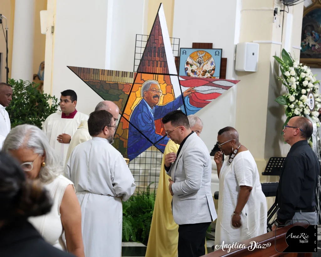 La misa inició con las voces de El Gran Combo de Puerto Rico, Anthony García, Joselito Hernández y Jerry Rivas, acompañados en el piano por José Antonio ‘Lenny’ Prieto.  Interpretaron “Todavía” y “Las Hojas Blancas”; momento épico de la despedida, ver a sus cantantes quebrantados dando su último adiós a su fundador y director. Anthony soneó, mientras Jerry y Joselito animaban a los presentes. Jerry, quien lleva más años en la Institución, arrancó lágrimas en el público al verlo luchando con sus sentimientos encontrados. Al finalizar su presentación, se fundieron en un fuerte abrazo los tres. Bravo… qué grandes son. Dios los continúe bendiciendo, para que sigan llevando su música y alegrando al público alrededor del mundo, honrando el legado de don Rafa ‘Felito’. Accede al enlace para que revivas el momento: https://www.facebook.com/share/v/1D8VKUpK5Y/